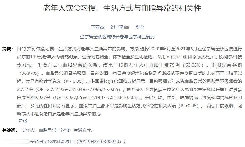 参考资料[1]王丽杰,刘宇翔,李宇.老年人饮食习惯、生活方式与血脂异常的相关性[J].中国医药导报炒股配资平台技巧,2022,