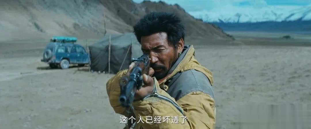 他的表演非常松弛,加上熟悉这一地区的环境,整个人看起来与故事背景完全融合到一起。当白菊阻止巡山队击毙盗猎分子的时候,扎措端着枪一脸的不服气。