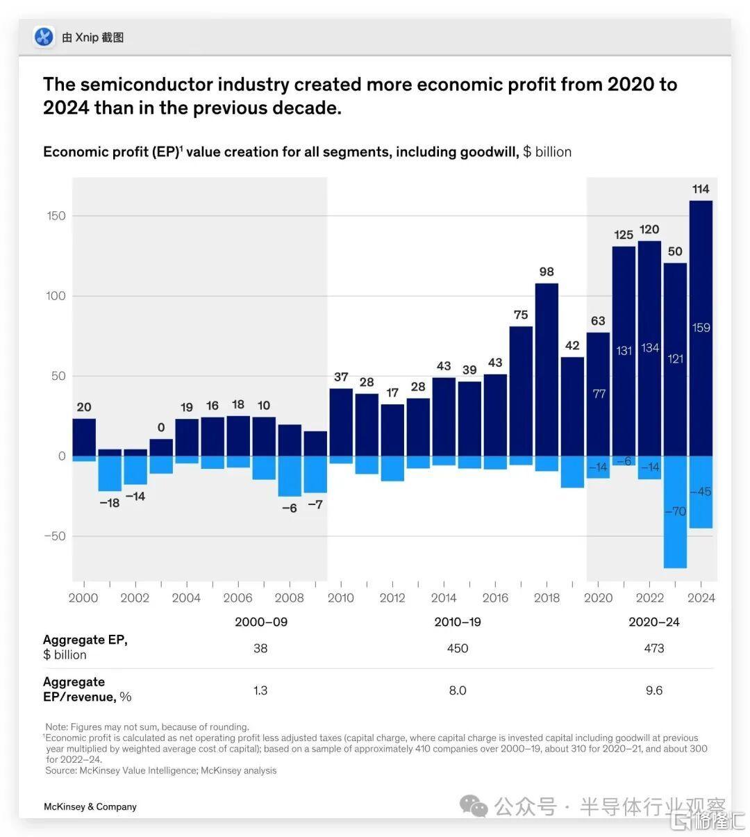 麦肯锡的数据显示,半导体行业的价值创造正呈现出前所未有的高度集中。